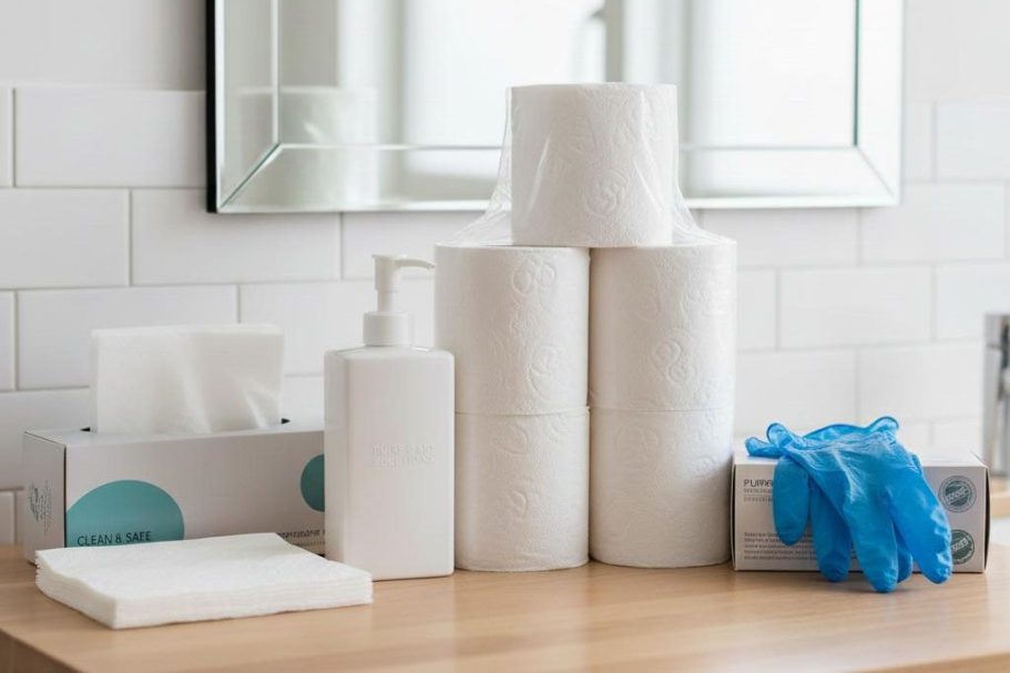 Wir prüfen Bestände und sorgen für Nachlieferung und Befüllung von Hygieneartikeln wie Seife, Toilettenpapier, Desinfektionsmittel und Einweghandschuhen.